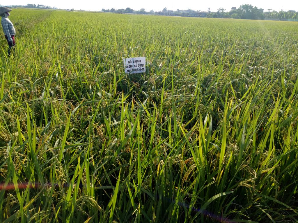 Ruộng lúa BC15 có sử dụng phân bón lá Multimolig-M cho lúa sinh trưởng và phát triển tốt, đẻ nhánh khỏe, cứng cây, nhiễm nhẹ sâu bệnh. Đặc biệt hơn, công thức sử dụng phân bón lá hữu cơ sinh học Multimolig-M tăng so với đối chứng không sử dụng Multimolig-M là 16,7%.