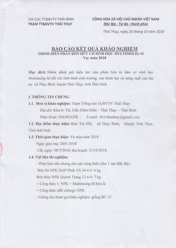 Báo cáo kết quả khảo nghiệm trên giống lúa BC15 tại Thái Thụy, Thái Bình